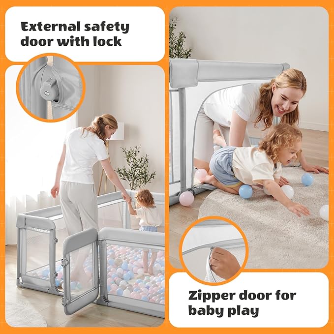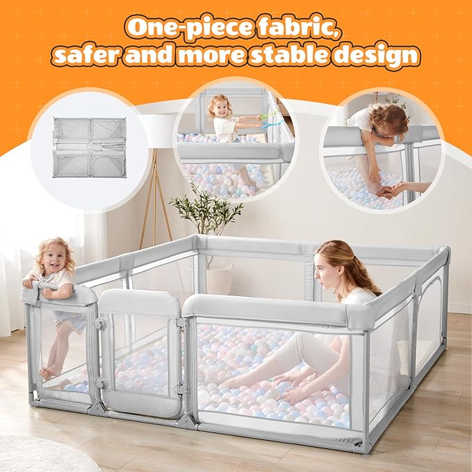 Baby Playpen,Extra Large Playpen for Babies and Toddlers, Sturdy Play Pen Play Yard with Safety Gate,79âx59âBaby Play Pen(Light Grey)