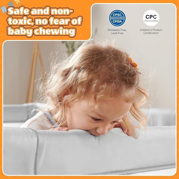 - đ¸ăDurable Material & US Safety Standard TestăCholena playpen is made of wear-resistant, tear-resistant cationic fabric /210D oxford fabric and strong steel pipes. All the top rails are padded with thicker sponge to prevent kids from being hit while playing. Baby's safety is our first priority, our play yards have finished test for lead and other toxic elements to meet or exceed government and ASTM safety standards