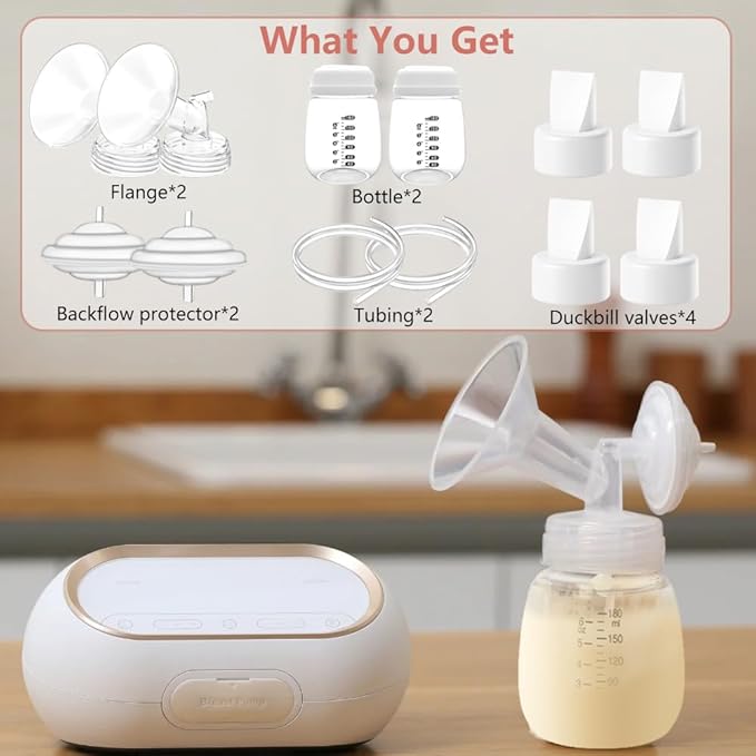 - 【Full Pump Parts Set Replacements】:12pieces full breast pump parts set including: FlangeX2, BottleX2(with screw rings and sealing disc),Backflow protectorX2,TubingX2, Duckbill ValvesX4.Not Original Accessories, Made by BDICOVE
