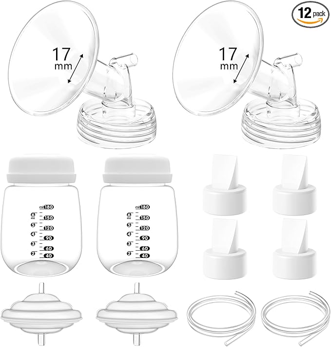 17mm Pump Parts Compatible with Spectra S1/S2/9 Plus,Spectra Replacement Pump Parts,Full Set Replace Include 17mm Flange, Duckbill Valve, Backflow Protector, Tubing and Bottle