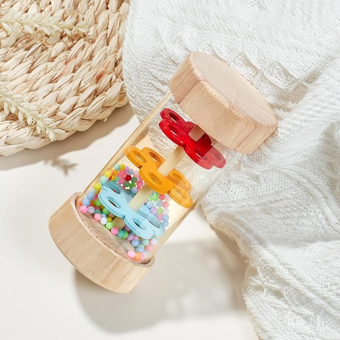 Toyssa Wooden Montessori Toys for Babies 6-12 months with Rainbow Color and Mirror Spinning Drum/Baby Shape puzzle 6-12 months/Sensory Toys Rain Rattle, Montessori Toys Gifts for Toddlers 1 Years Old