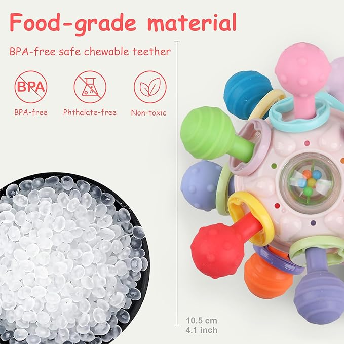 - Baby Teething Toys : Baby teething relief - with 12 gnawing points and 2 different textured surfaces, this toy effectively massages your baby's gums to alleviate teething pain. It's easy to hold and chew for babies 0-6 months, with smooth edges and no sharp burrs for safe grasping and chewing.