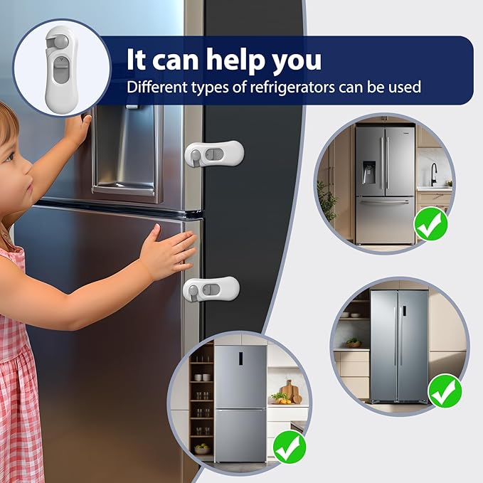 - Universal Compatibility: Our child safety fridge locks fit standard refrigerators, upright freezers, RV fridges, mini fridges, and more.