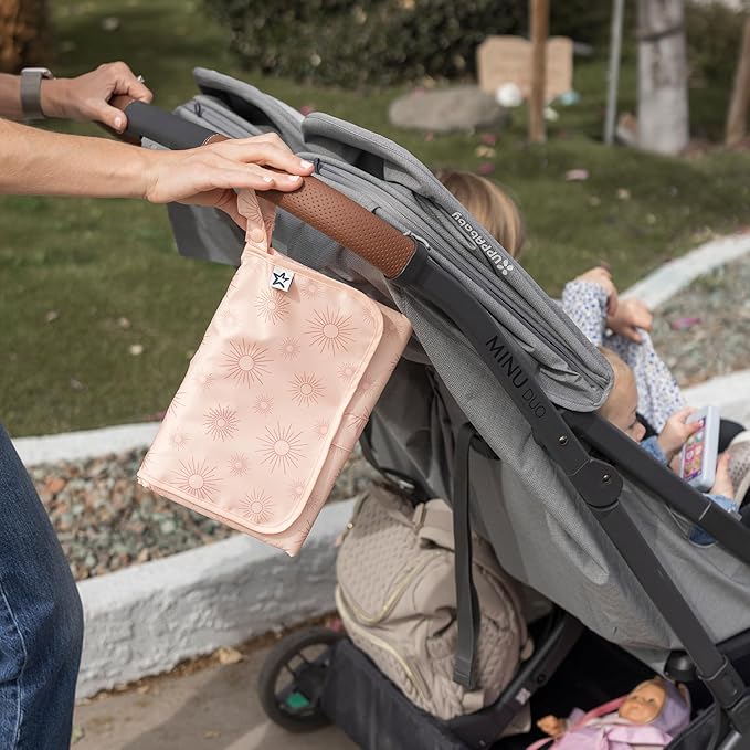 - EASY TO CARRY: Our Changing Pad wipes clean and folds flat to 7x10 inches for easy storage, and clips to strollers or diaper bags with a secure snap-loop handle—lightweight and ready wherever you go.