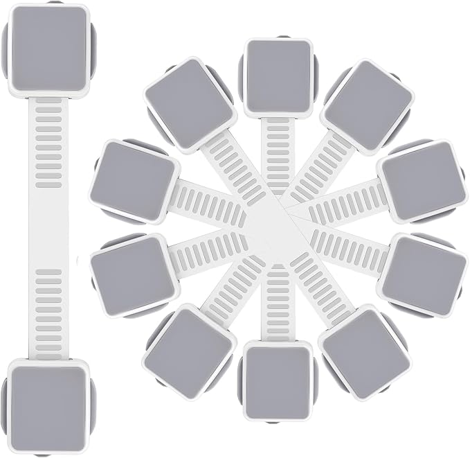- Drawer Locks Strap Length Adjustable:The flexible locks strap can be easily adjusted to different lengths to perfectly suit any application.our strap are made of safe material,and carefully designed in the width and thickness,making them lightweight, durability and difficulty in breaking.
