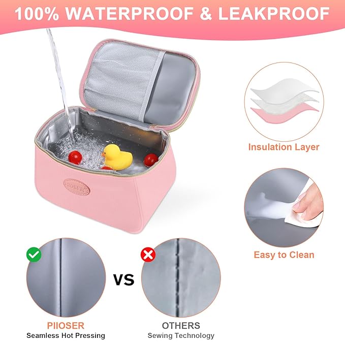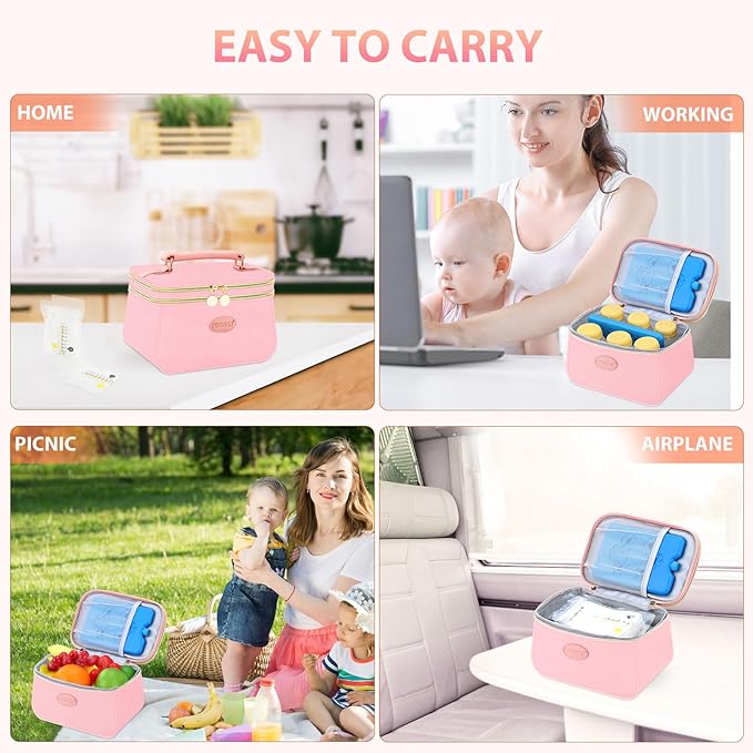PIIOSER Breast Milk Cooler Bag with 2 Ice Pack, Fit 6 Breastmilk Storage Bags Up to 8Oz, Insulated Baby Bottles Tote Bag for Daycare and Breastfeeding Mom (Pink-XS)