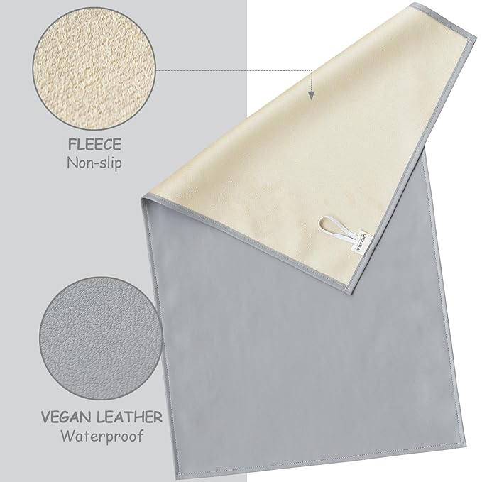 - EASY TO USE AND CLEAN:This portable changing pad can be easily folded and taken with you on the go,it's super easy to wipe down because it is made of waterproof leather material and doesn't have to be washed in the washer.It also has a elastic band (on the back) for folding and carrying,and you can hang it on the wall to keep the changing table tidly when you're not useing it
