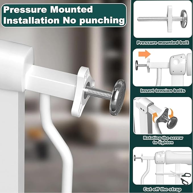 - 【EASY TO INSTALL & WALL FRIENDLY】 You can use Pressure mount installation No Drill,it's convenient and strong, and it can protect your wall .It's easy to remove,you can remove it anytime when it is not in use. Reuse is certainly possible when you move to a new place.Note:if you want to use it on the top of stairs,please use hardware mounted installation.