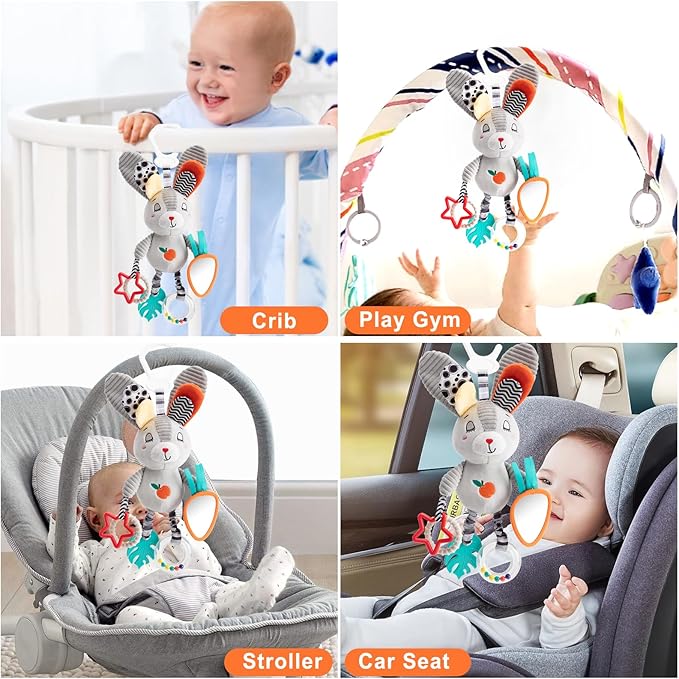 - Car Seat Hanging Toys: Stroller hanging Toys designed for baby stroller and car seat, crib mobile baby carrier, crib and exercise gym. It's more an awsome developmental toy than a parent-child interaction toy for babies. Best present for newborn, carseat toys for infants 0-6 months