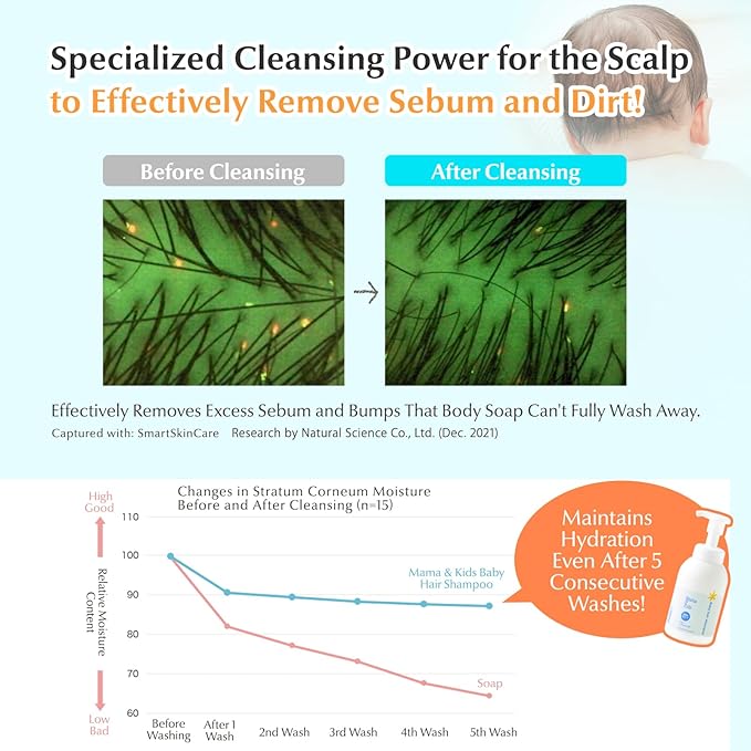 - Fluffy Foam for Easy Use: Dispenses a soft, fluffy foam with just one push, making it easy to wash baby’s scalp and hair with minimal effort and mess.