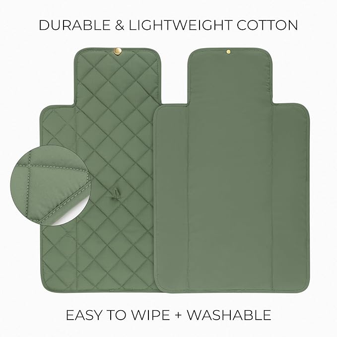 - Absolutely Stylish & Travel-Friendly: The portable diaper changing pad in a lovely sage color combines functionality with a touch of elegance. Perfectly sized at 16x25” it folds easily and can be secured with an elastic band for convenient storage in a diaper bag
