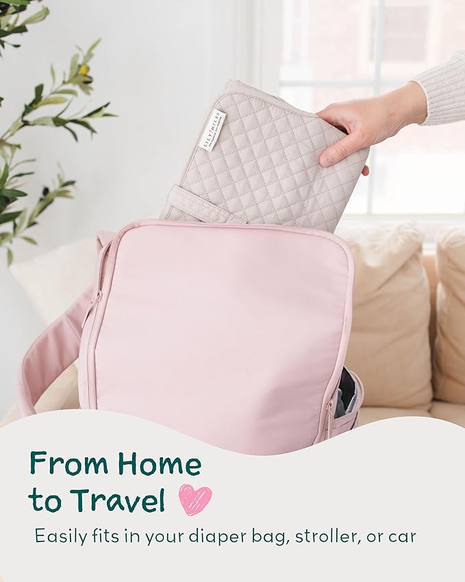 Lily Miles Baby Changing Pad Portable, Diaper Changing Mat with Magnetic Latches, Travel Pad for Diaper Bag, Baby Essentials, Wipeable & Waterproof Mat (Soft Sand, Large)