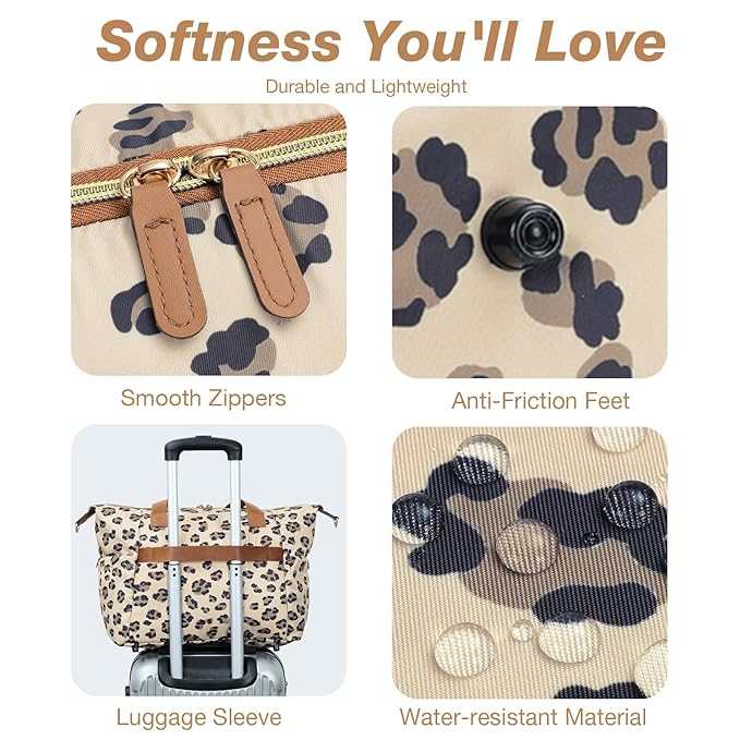 Diaper Bag Tote, Large Baby Diaper Bags for Travel, Hospital Bag for Labor Delivery with Pacifier Case, Changing Pad, Shoulder Strap, Leopard Print