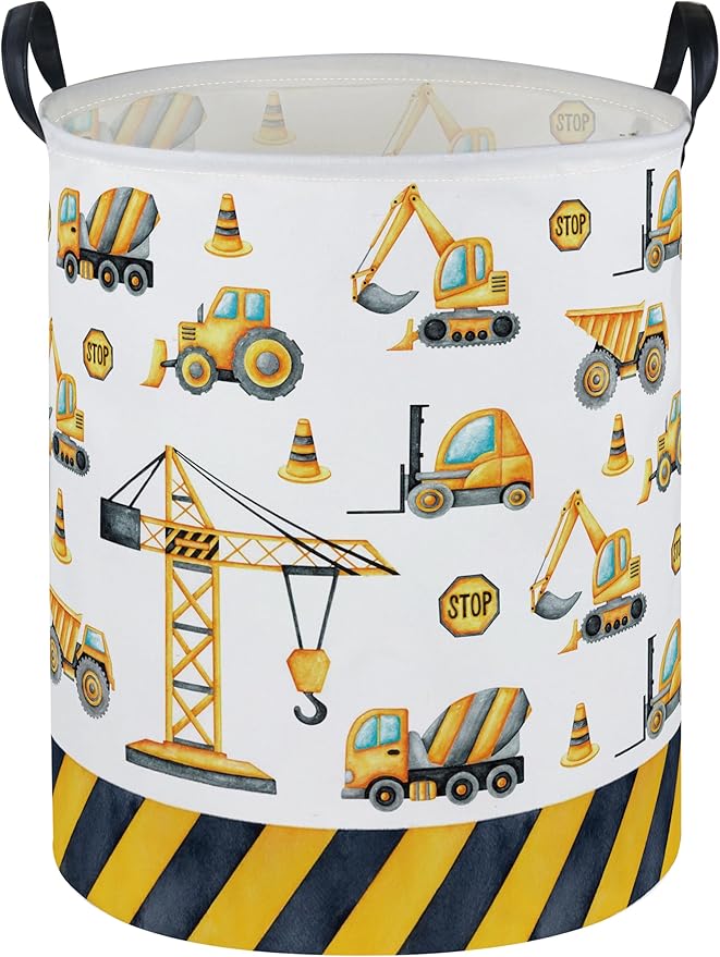 ESSME Kids Laundry Basket,Car Hamper Collapsible Canvas Waterproof Storage Bin for Boys, Nursery Hamper,Gift Baskets,toy bins(Engineering vehicle)