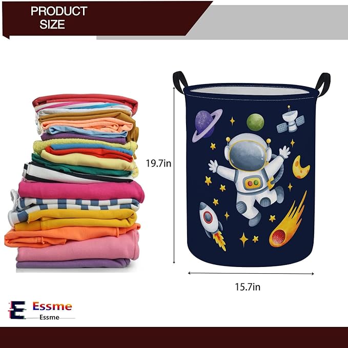 ESSME Kids Laundry Basket,Space Hamper Collapsible Canvas Waterproof Storage Bin for Boys, Nursery Hamper,Gift Baskets,toy bins(Astronaut)
