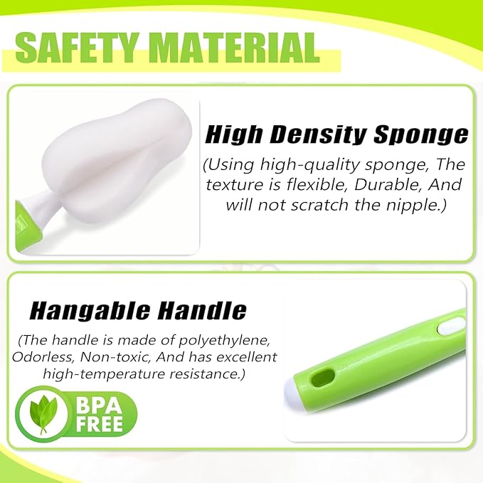 - 【High Quality Sponge】- INVODA nipple brush is made of high-density, fluffy, and soft sponge, which is more conducive to gentle but thorough cleaning of nipple and accessories than nylon brushes, without damaging them.