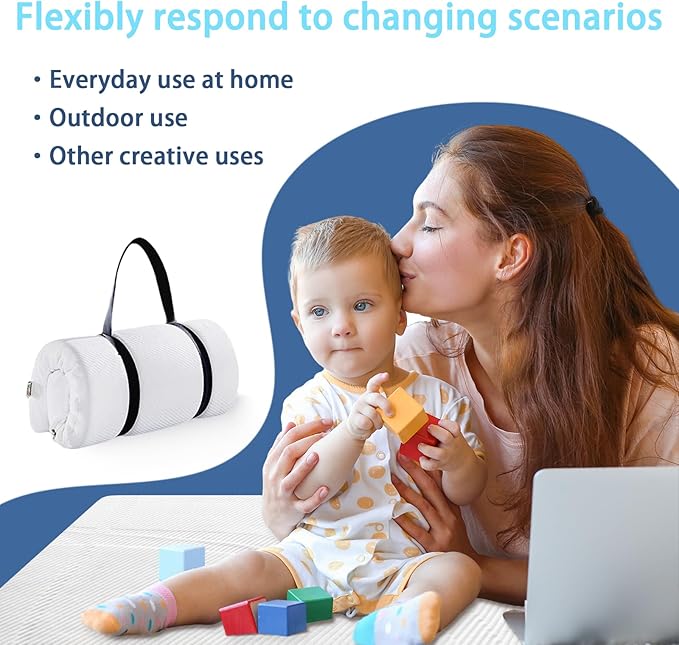 - PORTABLE MATTRESS Our lightweight and convenient design allows you to easily roll up and carry your mattress wherever you go. Whether you're traveling or visiting family and friends, your baby can have a comfortable place to rest and play with our mattress. Both Parent and child enjoy their own time while going out.