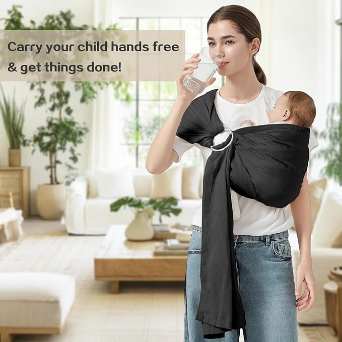 Baby Ring Sling Wrap, Lightweight Baby Carrier Sling Toddler Sling, Cotton Baby Wraps Carrier (7-35 lbs) for Infants and Toddlers, Baby Shower Gifts, Black