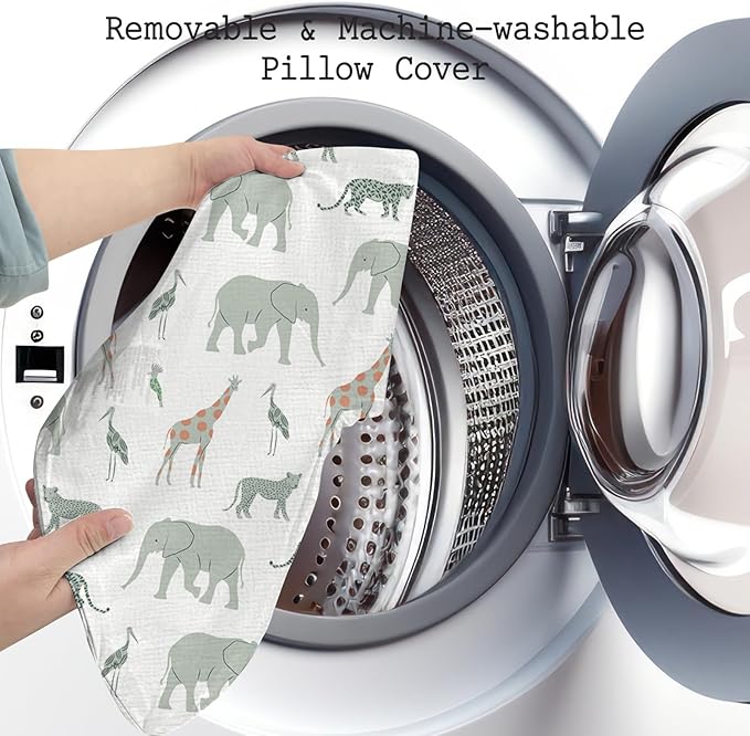 - 【EASY CARE】 The feeding pillow removable cover is machine washable. Due to the muslin cotton fabric, it will be softer and softer with more washes. NOTE: We use vacuum gift style package, please shake & rub the pillow by hand to let the air into it OR put the pillow in the dryer for 5-10 minutes to recover it.