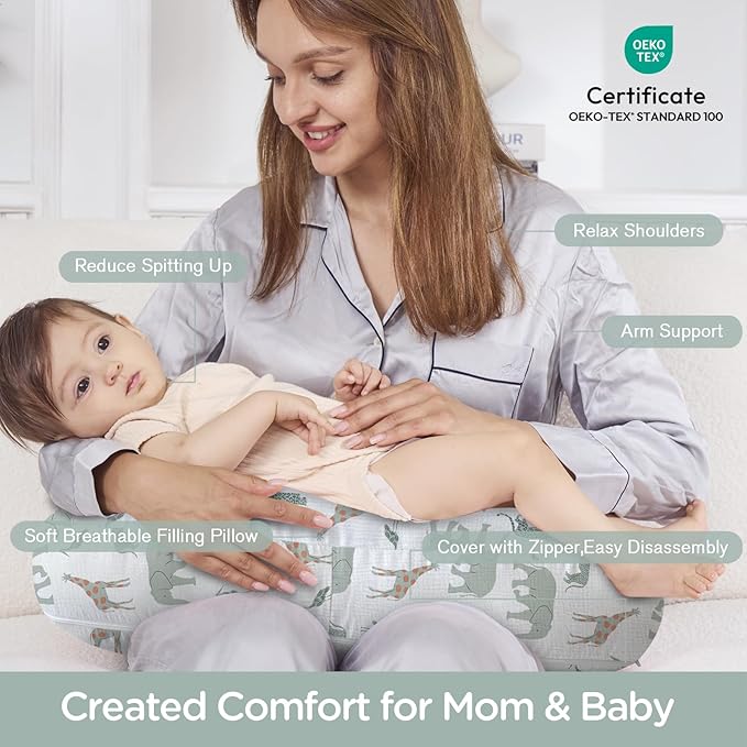 - 【COMFORT SUPPORT】Designed for Infant feeding, Our cotton nursing pillow provides comfortable support during breastfeeding or bottle feeding. The nursing pillow relieves pressure on the shoulders and arms while ensuring that the baby does not slip. That creates cozy and safe environment for babies and parents.
