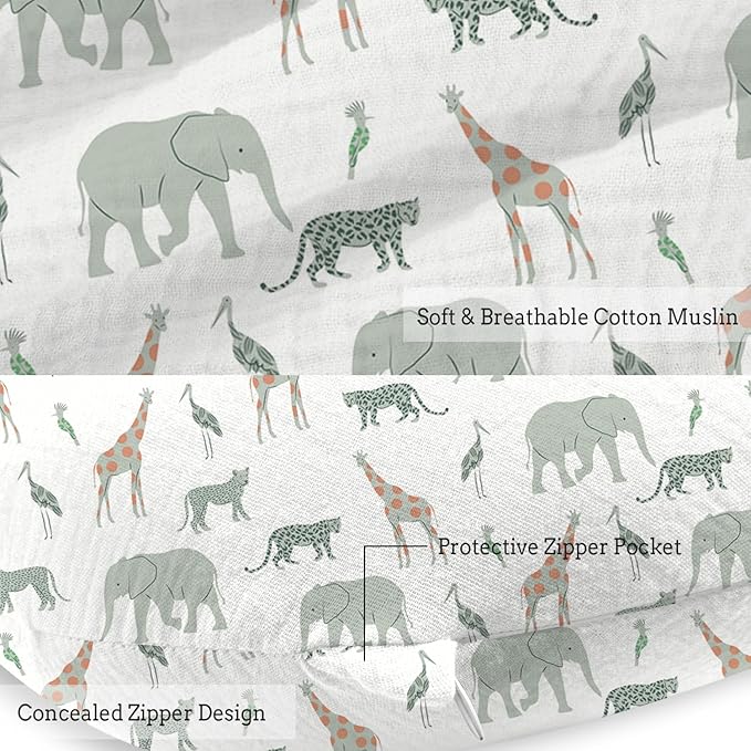 Little Grape Land Muslin Nursing Pillow, Soft 100% Cotton Breastfeeding Pillow with Breathable Removable Cover, Breast Feeding Pillows for Babies 0-12 Months with Protective Zipper Tropical Quest