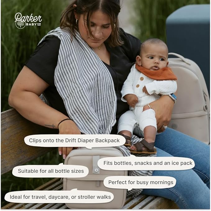Parker Baby Drift Neoprene Insulated Baby Bottle Cooler | Soft & Waterproof Snacks & Breast Milk Cooler Travel Bag w/Insulated Interior | Attaches to Backpacks & Strollers | Modern & Neutral Colors