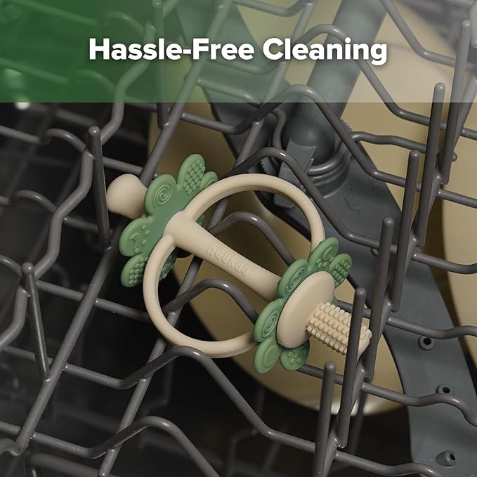 - ππππ-πππππ ππππππ πππ πππππππ:With a nipple-shaped end for comfort and 360Β° bristles for gum massage, this teether provides teething relief and help supports oral hygiene.