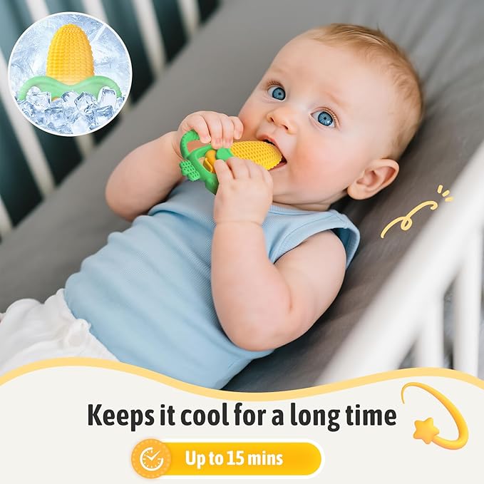 akolik Baby Teething Toys, Baby Frozen Teething Relief, BPA Free Infant Chew Toys Newborn Accessories, Cold Freezer Teethers for Babies 0-3-6-9-12 Months Old Boys Girls(Corn C)