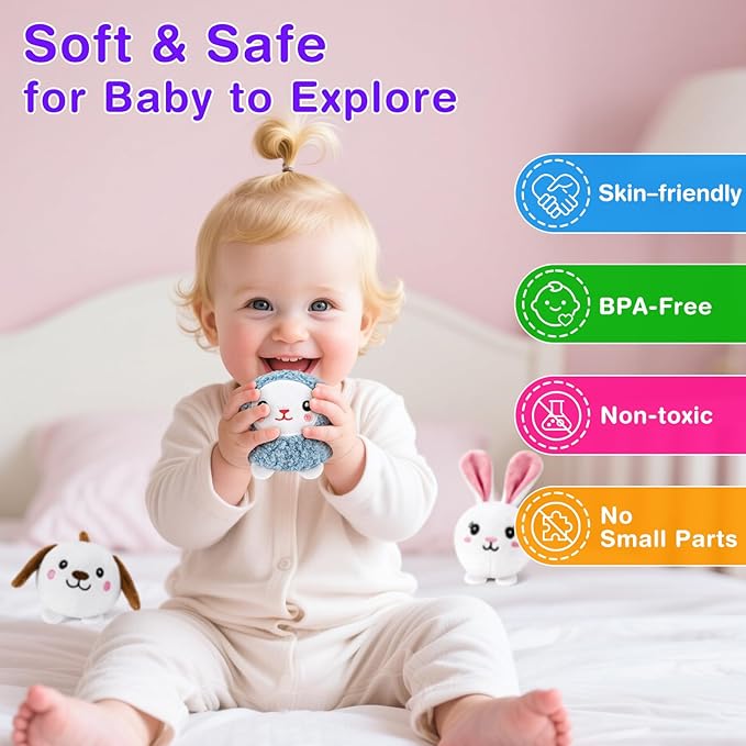 - SAFETY & QUALITY - Worry-free when our plush animals reach your little one. They're made from soft premium materials, the cute plush companions deliver 100% safety for newborns, infants, and toddlers, built to last with machine-washable durability, no small parts included. Our products meet rigorous international standards, certified by both CHILDREN'S PRODUCT CERTIFICATE (CPC) and CE safety regulations, meets the highest standards for safe, enriching play!