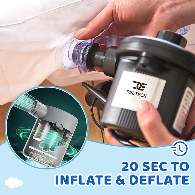 - 【Easy Inflation】Convenience is key when it comes to inflatable travel bed for kids, and this kids air mattress makes the inflation process simple and fast. It comes equipped with a high-efficiency air pump with three different nozzle sizes that allows the baby air mattress to be fully inflated in just minutes. This flexibility makes it a multifunctional tool for families, allowing them to use it beyond the bed itself. Deflating the bed is equally simple, and it can be rolled up and stored in its accompanying carry bag.