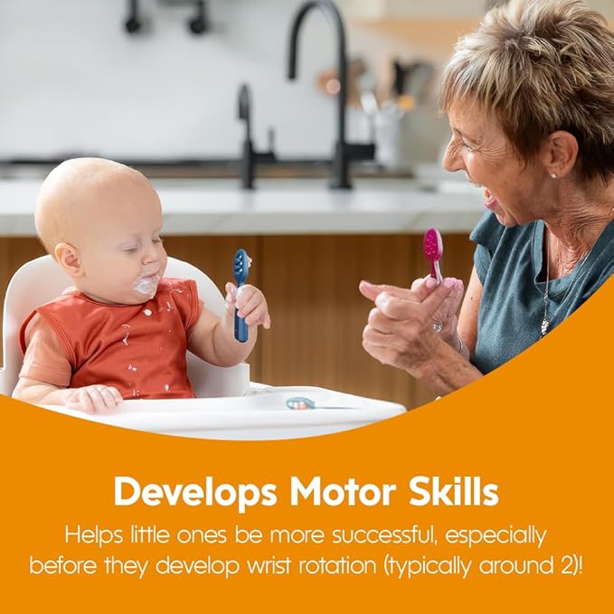 - Baby Utensils for Ages 6 Months to 18 Months: No scooping, no balancing, and best of all: no wrong way to hold it! Thicker, contoured handled baby spoons designed to comfortably and securely fit a child's hand.
