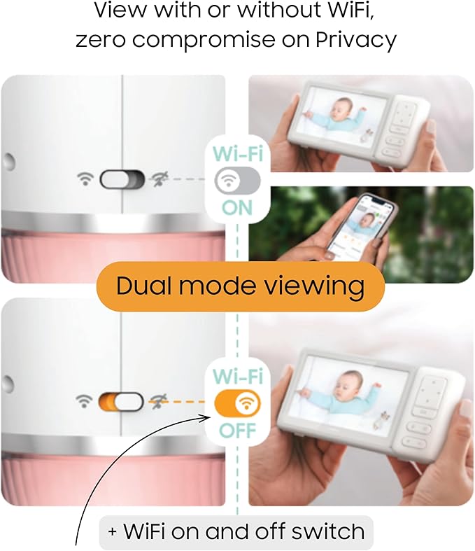 - 5″ Portable Parent Unit & Dual‑Mode Viewing: Stay connected your way, view your baby on the secure 5” screen (WiFi-free) or switch to the ChillaxCare App for remote access anytime, anywhere