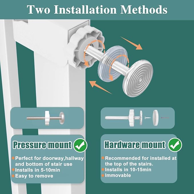 - EASY INSTALLATION --- Pressure-mounted dog gates indoor are easy to install and move without screws and brackets, fitting tightly in between walls and door-frames.
