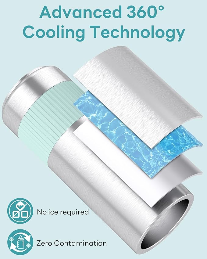 - Rugged 304 Stainless Steel, Smart Design for Real Parent Life: Built with durable, triple-layer thermal barriers and shock-resistant stainless steel frame to withstand daily use. Rapid-chill interior cools milk faster than standard coolers—no messy ice packs needed! Compact cube shape maximizes space efficiency.