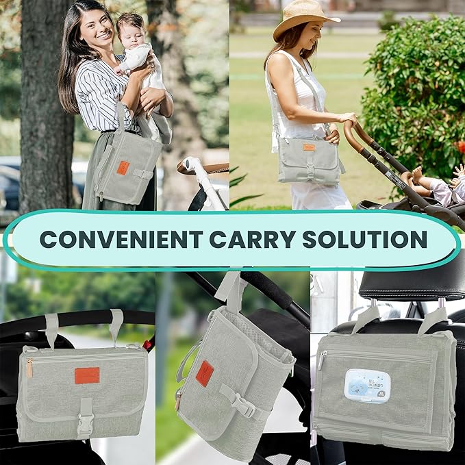 - Convenient carry solution - Our portable changing pad's versatile straps provide seamless attachment to strollers, car headrests, and bags. Offering multiple carrying options, it can be used as a clutch bag and also as a shoulder bag. This multi-purpose handle ensures easy and convenient carrying, making it the ideal solution for parents on the move—versatile, adaptable, and ready for any situation.