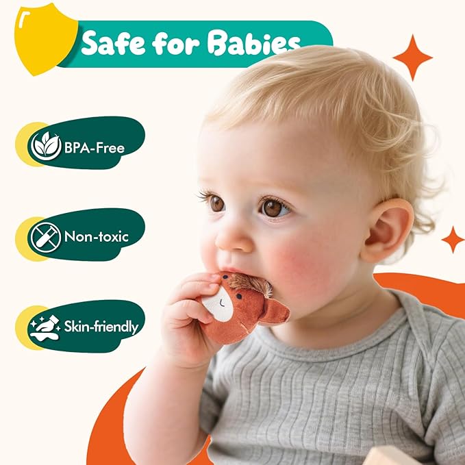 - 【Safe, Soft & Washable】Made of non-toxic, baby-safe materials with no small parts—perfect for teething. Certified to meet ASTM/CE standards. Machine-washable and durable for long-lasting play up to age 3.