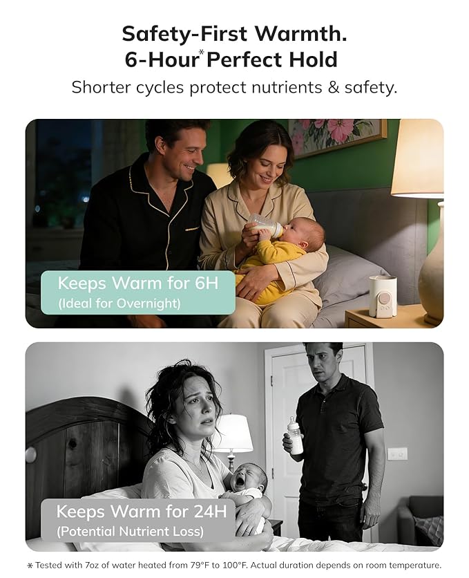 - 【Soft Night Light & 1-Year Warranty】A gentle glow helps you feed without turning on harsh lights, keeping those nighttime moments calm. Backed by a worry-free 1-year warranty, this portable bottle warmer is designed for real parenting life.