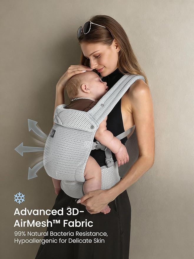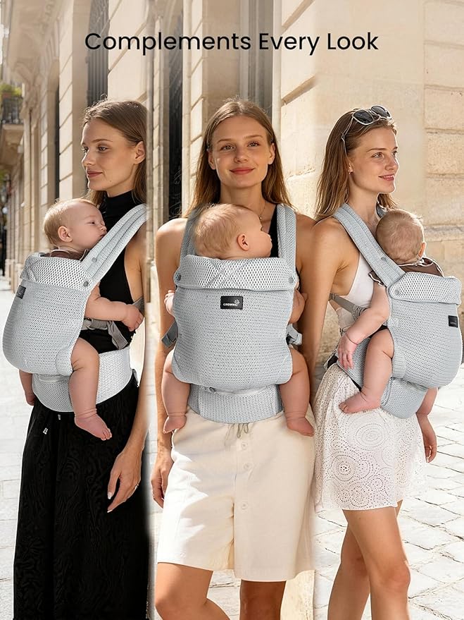 GROWNSY Baby Carrier Newborn to Toddler, Lightweight Ergonomic 7-44 lbs Newborn Carrier with Head Support, Easy to Wear Hands Free Infant Carrier for 0-36 Months, Gray Air Mesh