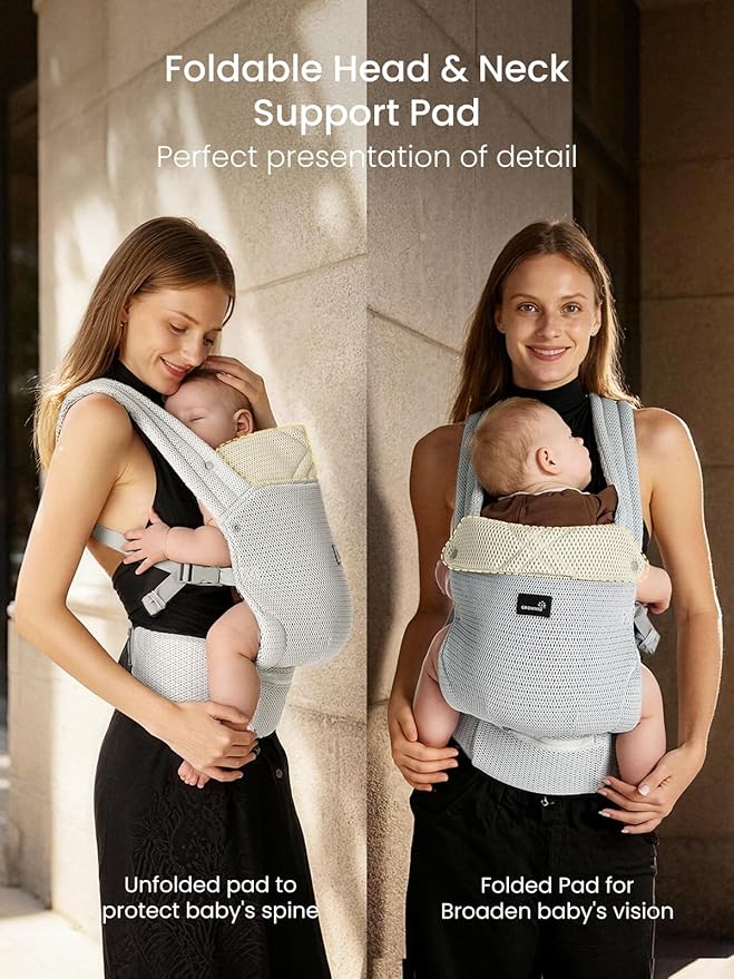- Growth With Security: GROWNSY baby carrier with a foldable head and neck support, it can effectively protect your baby's cervical spine. Ergonomic "M" shaped posture design ensures your baby hip joint healthy development. In addition, it wrapping your baby's body in a natural “C” shape, suitable for baby body's natural growth curve, providing comfort and safety for your baby's growth