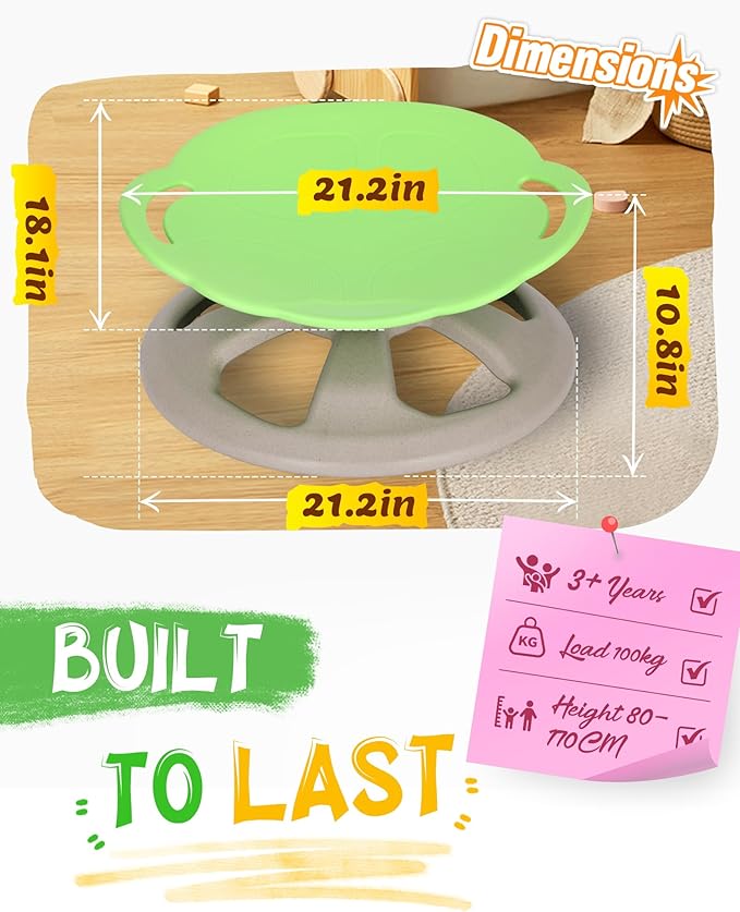 Spinning Chair for Autistic Kids with Handle, Sensory Swivel Chair, 220LBS Weight Capacity, Sensory Toy for Children with ADHD/Autism, Training Body Coordination, 3+ Years (Light Green)