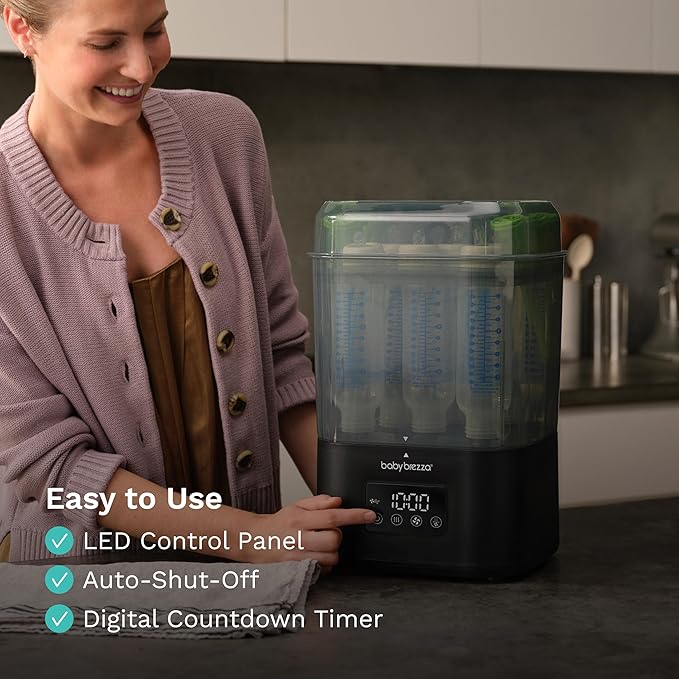 - AUTOMATICALLY STERILIZES & DRIES BOTTLES, PUMP PARTS & ACCESSORIES IN 1 EASY STEP: Eliminates 99.9% of germs with steam, then dries with hot air; Products stay sanitized inside for 48 hours; Features Countdown Timer, Auto-Shut-Off & Quick Setup