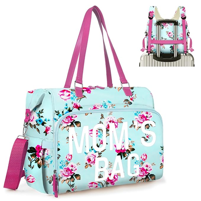 Pripher Diaper Bag Tote Mommy Bag Hospital Bag Large Capacity Travel Baby Diaper Bags Waterproof and Durable, Blue Floral
