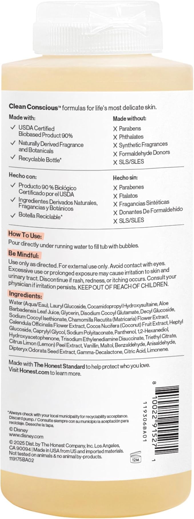 The Honest Company Foaming Bubble Bath Gentle Enough for Baby Dermatologist Tested Tear-Free Hypoallergenic Disney’s Mickey Mouse Comfort Sweet Cream 12 fl oz