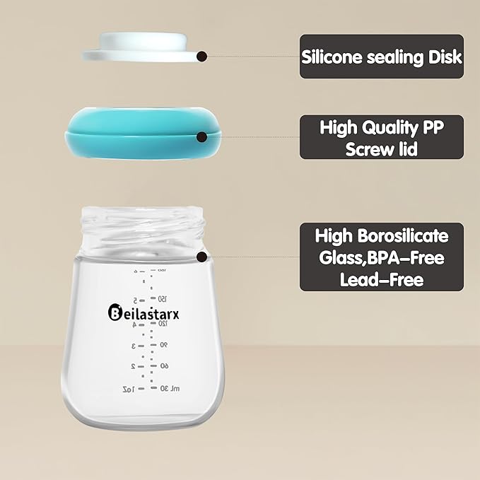 - Safe Material: Beilastarx glass breastmilk storage bottles are made of high-quality borosilicate glass, which is pure, clear and free of impurities, and does not contain BPA or BPS. It is heat-resistant and easy to clean and sterilize.