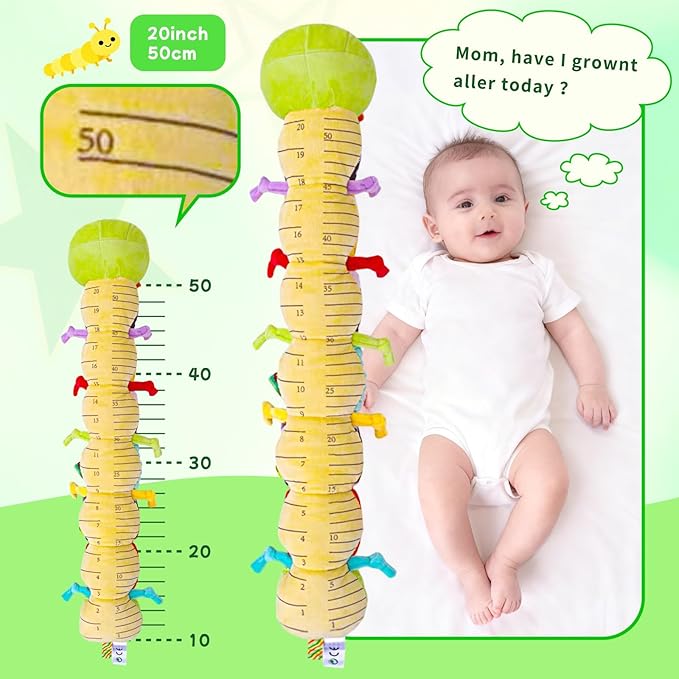 - [Ideal Gift] Combining soft colors, fun sounds, and diverse tactile experiences, this toy integrates Montessori education and emotional soothing functions. It features a 20-inch height chart in the belly, allowing you to measure your baby's growth at any time, making it a thoughtful gift for newborns.