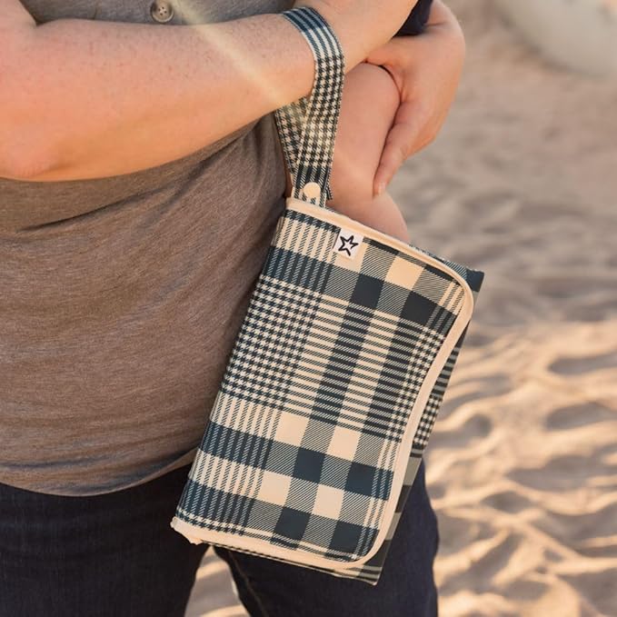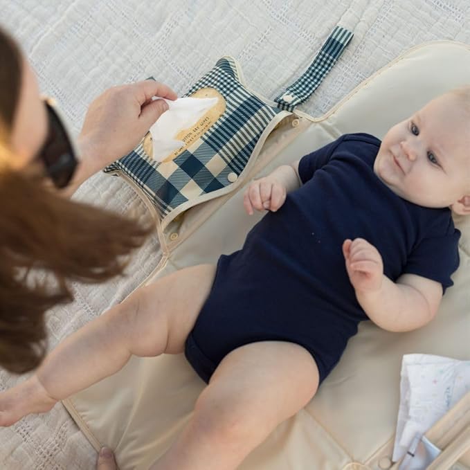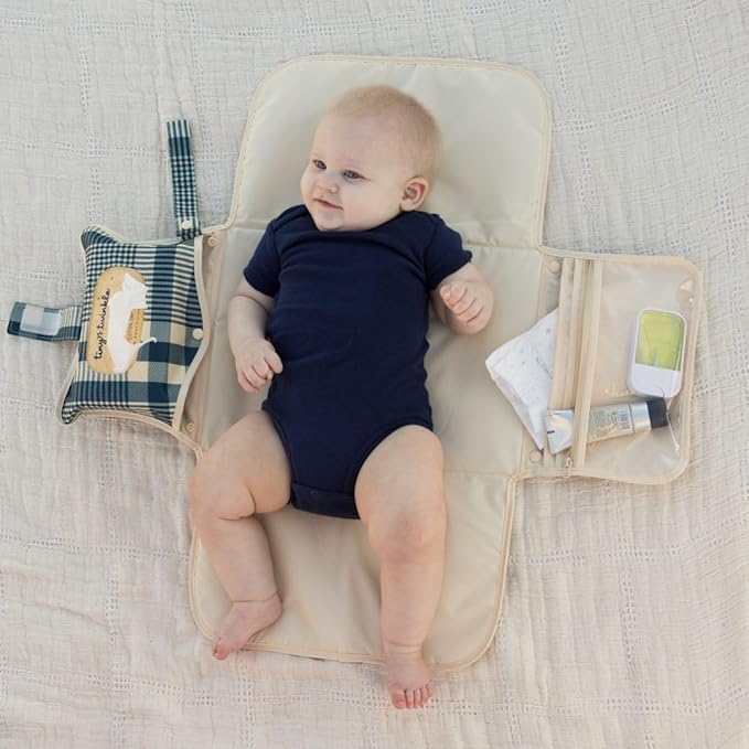 Tiny Twinkle Portable Diaper Changing Pad | Waterproof, Wipeable & Compact Baby Changing Pad for Travel | Smart Wipes Pocket & Organized Storage| Newborn Shower Gift (Gingham)