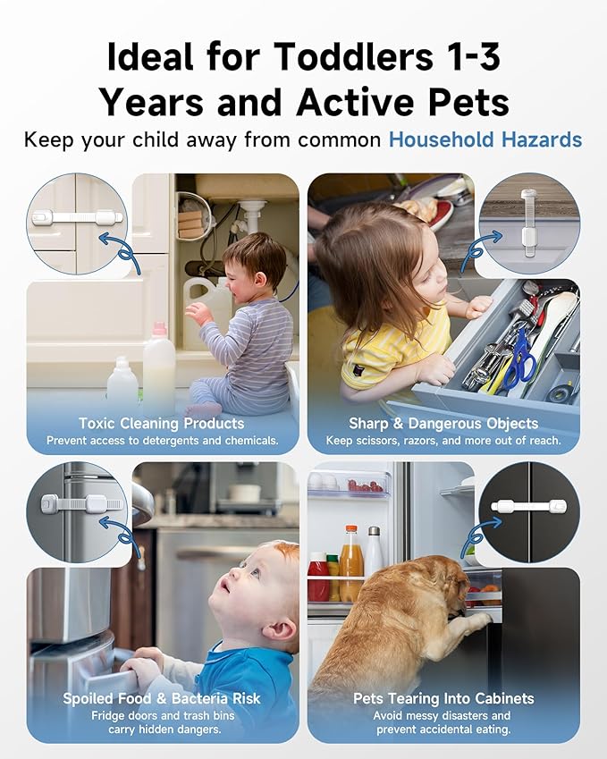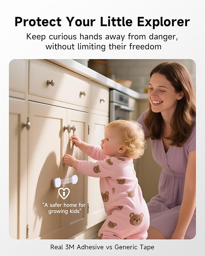 - Durable, Child-Safe Materials - Crafted from high-quality, BPA-free materials, these baby proof cabinet locks are non-toxic, flexible, and built to withstand daily use while keeping curious kids away.