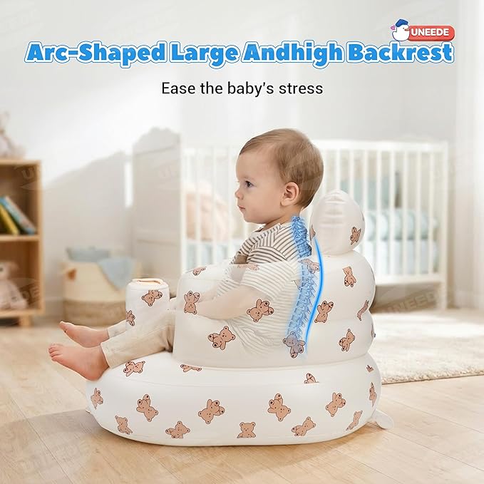 UNEEDE Inflatable Baby Seat for 3 Months & Up, Infant Floor Chair for Sitting Up with Built in Air Pump, Lightweight Travel Baby Bath Seat for Home, Camping, Beach & Outdoor