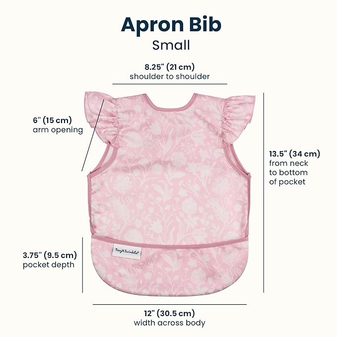 Tiny Twinkle Mess Proof Baby Bib for Girls | Waterproof Toddler Bib for Eating | Baby Apron for Feeding | Machine Washable | Perfect Shower Gift (Toile, 6–24M)