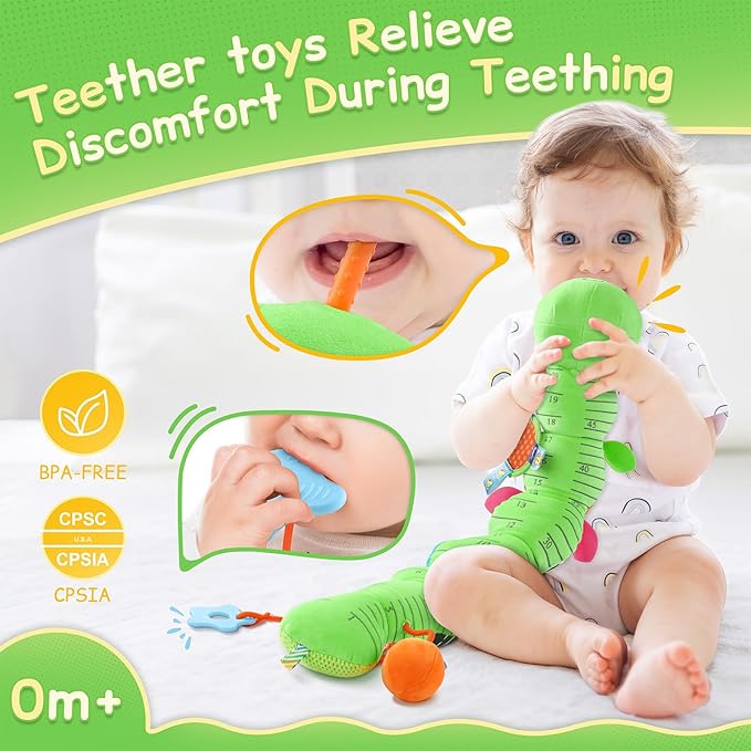 - 【Sensory Toys for Newborns】 The toys for 0-3-6-12 months will engage your baby's senses with built-in crinkle paper, a gentle rattle,a soothing melody, and a soft squeaker. Combined with high-contrast colors and varied textures, this caterpillar stimulates auditory, visual, and tactile development, encouraging curiosity and fine motor skills from 0 to 12 months
